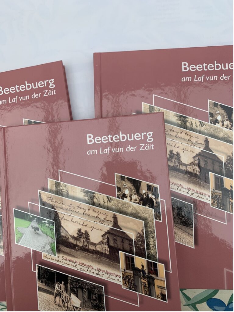 Die Geschichtsfreunde aus der Gemeinde Bettemburg arbeiten zur Zeit aktiv an der Ausgabe „Beetebuerg am Laf vun der Zäit, Band IX“ (1) und an der Publikatioun vun de „Chronique Familiale de la Commune de Bettembourg“ (2). Sollten Sie an diesen neuen Büchern interessiert sein senden Sie uns bitte eine Kurze Mail an geschichtsfrenn@beetebuerg.org mit dem Vermerk 1 oder 2 oder 1+2.